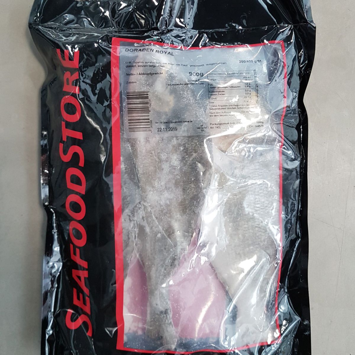 Dorade Royal roh mit Kopf und mit Haut 200-400 -900g